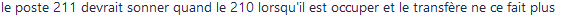 Ah, la binouse ... Nicolas 13 nov. 2024 Texte : "le poste 211 devrait sonner quand le 210 lorsqu'il est occuper et le transfère ne ce fait plus"
