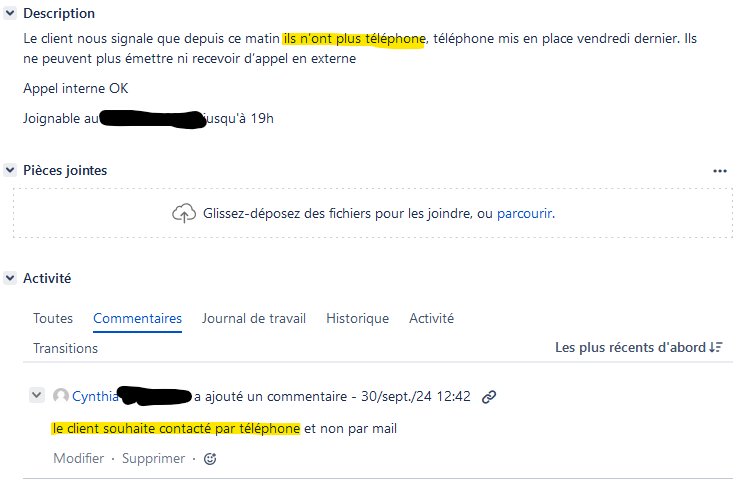 C'est parti Nicolas 30 sept. 2024 Le client signale une panne de la téléphonie ... Et demande d'être contacté sur son téléphone.