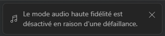 La semaine commence bien Nicolas 3 mars 2025 Texte : "Le mode audio haute fidélité est désactivé en raison d'une défaillance."